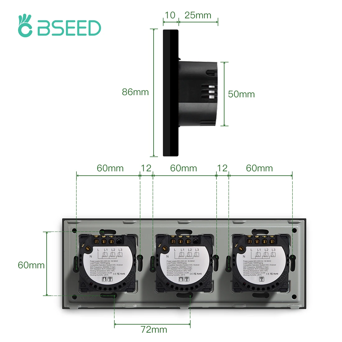 Сенсорный светильник ель BSEED с Wi-Fi, 123 клавиши, двойной смарт-выключатель для штор, сенсорный экран, беспроводное управление, приложение Smart Life Tuya