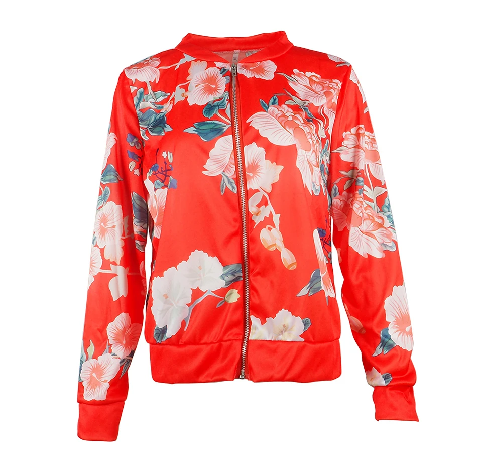 Женская куртка с цветочным принтом, топы с длинным рукавом и круглым вырезом, свитшот, весенние приталенные женские пальто и куртки, верхняя одежда на молнии
