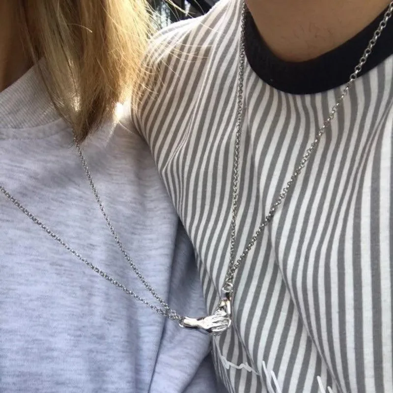 Держа подвеска на руки пары магнитное ожерелье подружка бойфренд дружба Эстетическая нержавеющая сталь рукопожатие подарок