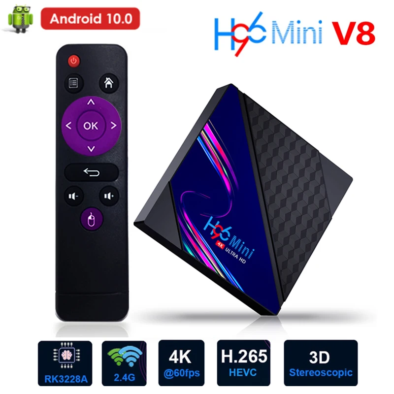ТВ-приставка H96 Mini V8 RK3328A, Android 10,0, четырехъядерная, беспроводная, 1080P, 4K, 3D, медиаплеер, 2,4G, Wi-Fi