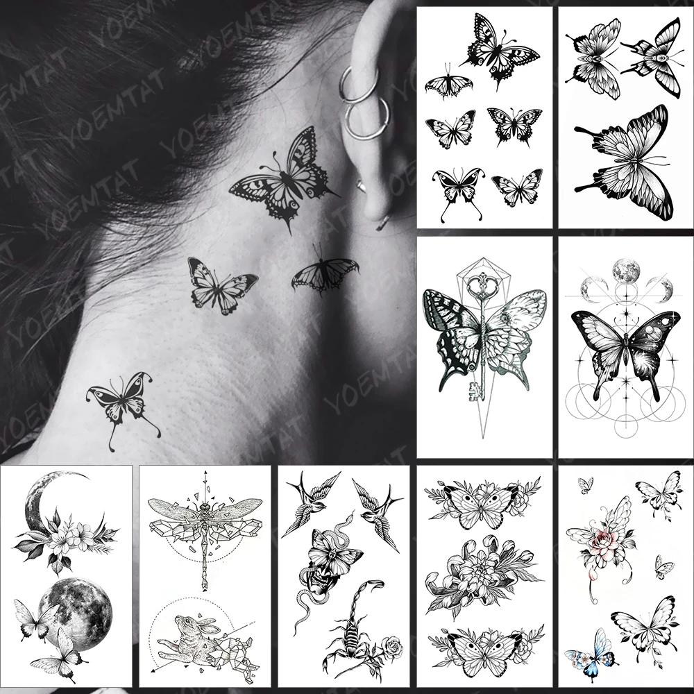 Водостойкая Временная тату-наклейка, черная бабочка, змея, искусственная татуировка, женские, мужские уши, пикантные боди-арт, татуировки для детей