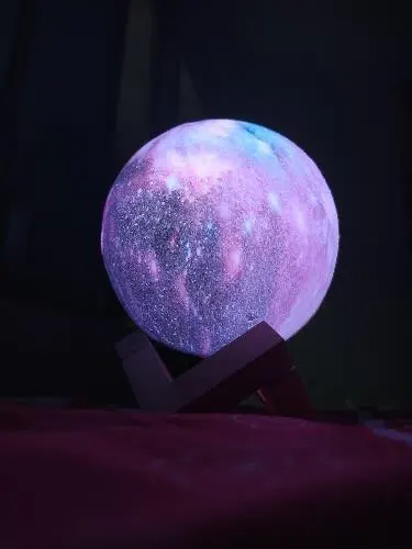 Our son is completely obsessed with all things space related. He has a space themed bedroom, complete with rocket blankets and pillows and NASA posters, and a moon lamp on the wall. He wanted one of these lamps because it looks like another planet when dark, and he can change the colors from across the room on his bed, while pretending to be driving his rocketship toward the strange planet. He sets up his telescope in his bedroom and pretends he is spotting the planet from far away. It totally makes his night to see it lit up at night before bed. He has even the named the planet.
