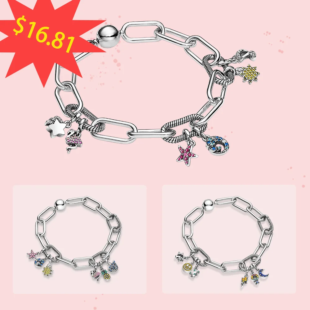 Новый браслет из стерлингового серебра со мной браслеты с подвескам...