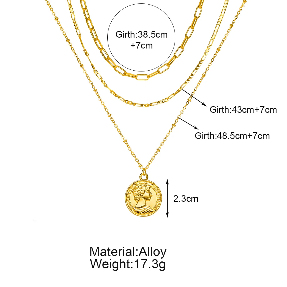 Новинка 2021, трендовая Весенняя и летняя многослойная металлическая цепочка, змеиная монета, сердце, портрет, резной кулон, ожерелье для женщин, вечерние, подарок