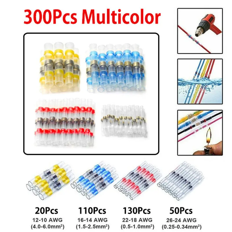 Соединители для паяных соединений проводов, 300 шт., термоусадочные...