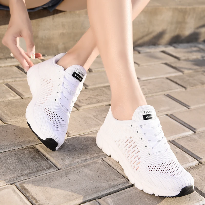 Кроссовки женские на платформе, легкие дышащие, на вулканизированной подошве, Повседневная прогулочная обувь, белые, на лето