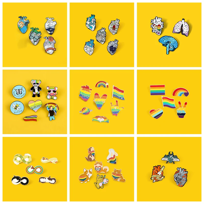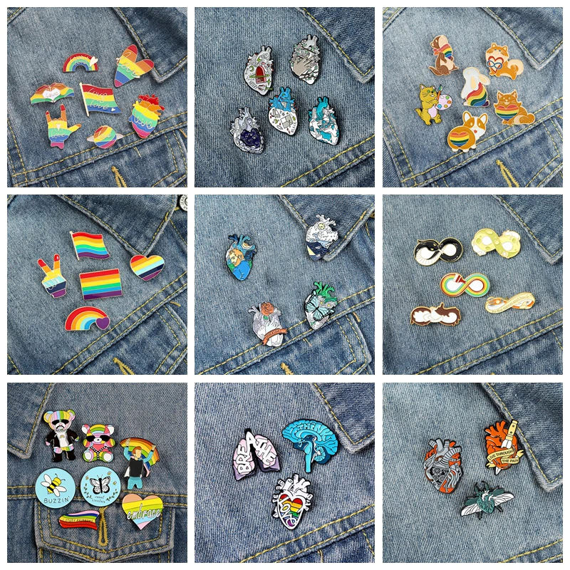 3-9 шт.компл., гордость с любовью, GLBT, радуга, сердце, эмалированная булавка, значки, броши для детей, женская мода, сумка, искусственные подарки, оптовая продажа