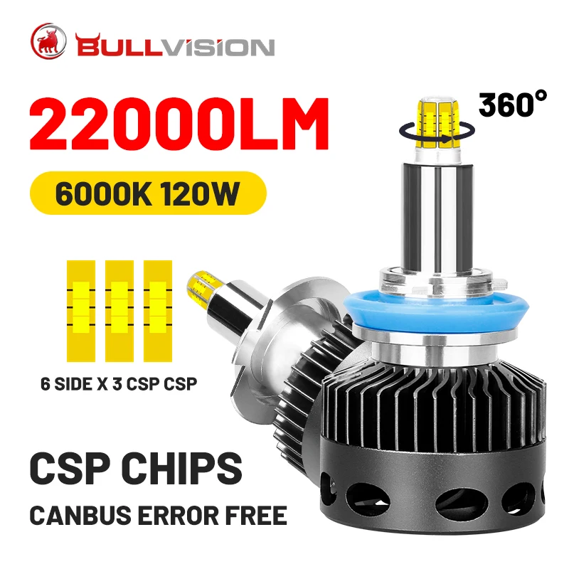 Ксеноновые лампы BULLVISION D1S, D2S, D3S, D4S, HID, 22000LM, светодиодсветодиодный лампы H1, H7, 9005, 9006, HB3, HB4, H11, H8, H9, 360 градусов, CSP, чипы 6000K, белые