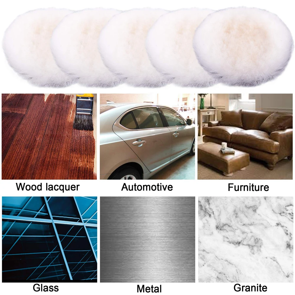 Полировальная подкладка из 100% шерсти, мягкие полировальные подкладки из овечьей кожи, инструменты для восковой обработки, подкладки с обратной стороны на липучке для автомобильной мебели и стекла