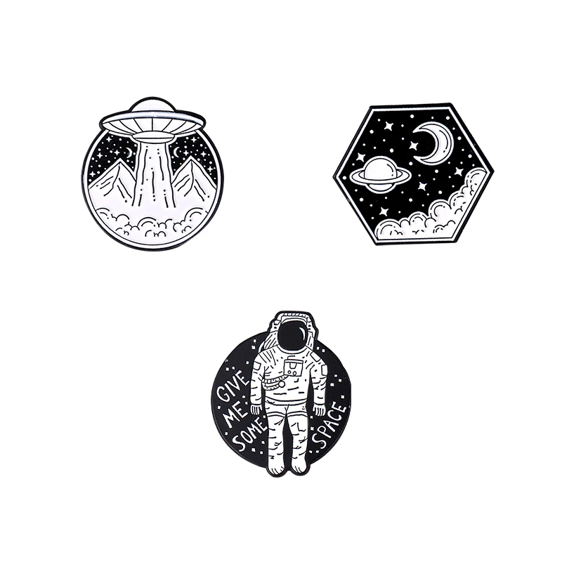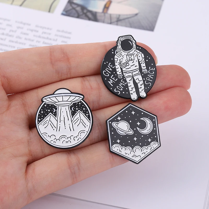 Эмалированные булавки в виде астронавта, НЛО, значок, звезда, луна,...