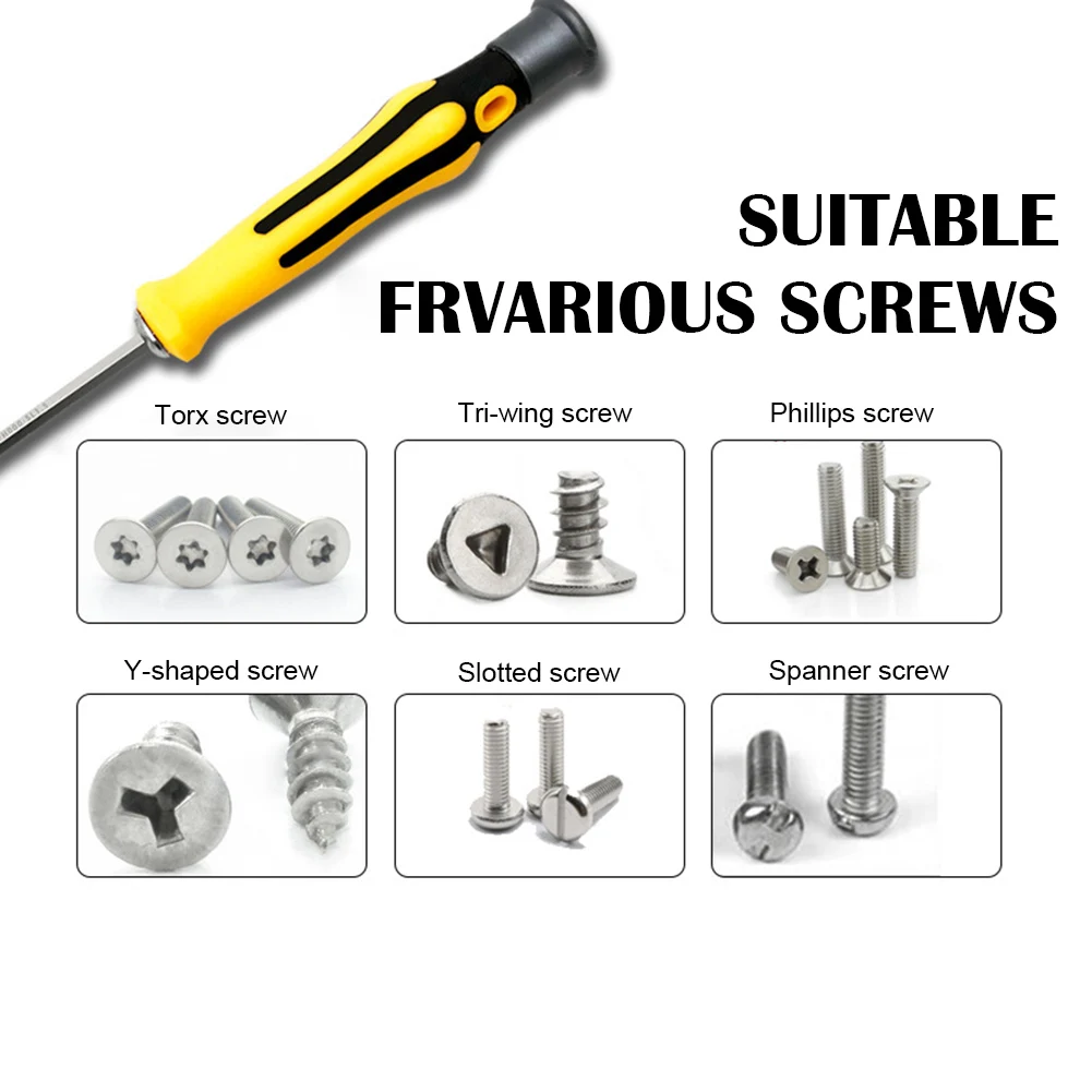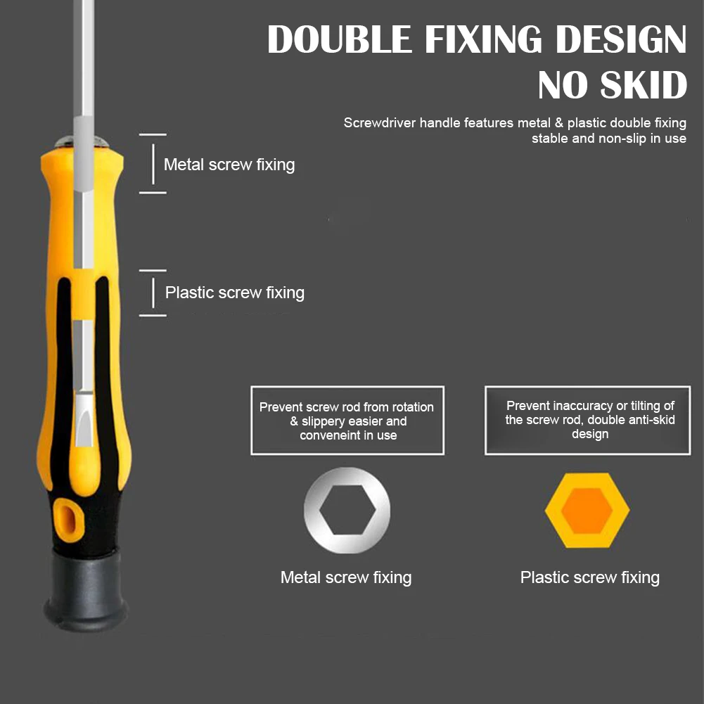 Особенности:* 1. Этот набор отверток изготовлен из высококачественной хромово-ванадиевой легированной стали, отличается прочностью и прочностью для долгосрочного использования.* 2. Винтовой стержень имеет двойную термическую обработку с высокой твердостью, хорошей прочностью и износостойкостью. Со стальным уплотнением различных моделей выгравированы для легкого поиска.* 3. Ручка отвертки изготовлена из высококачественной ПП + ТПР с подвесным отверстием и поворотной ручкой, с противоскользящей и стабильной при использовании.* 4. Двойная конструкция: Этот набор отверток включает в себя 6 двойных бит из 12 различных спецификаций для легкой замены, удовлетворяя ваши различные потребности.