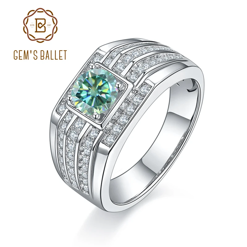 Мужское кольцо GEM'S BALLET 1Ct 6,5 мм с бриллиантом Moissanite, 92...
