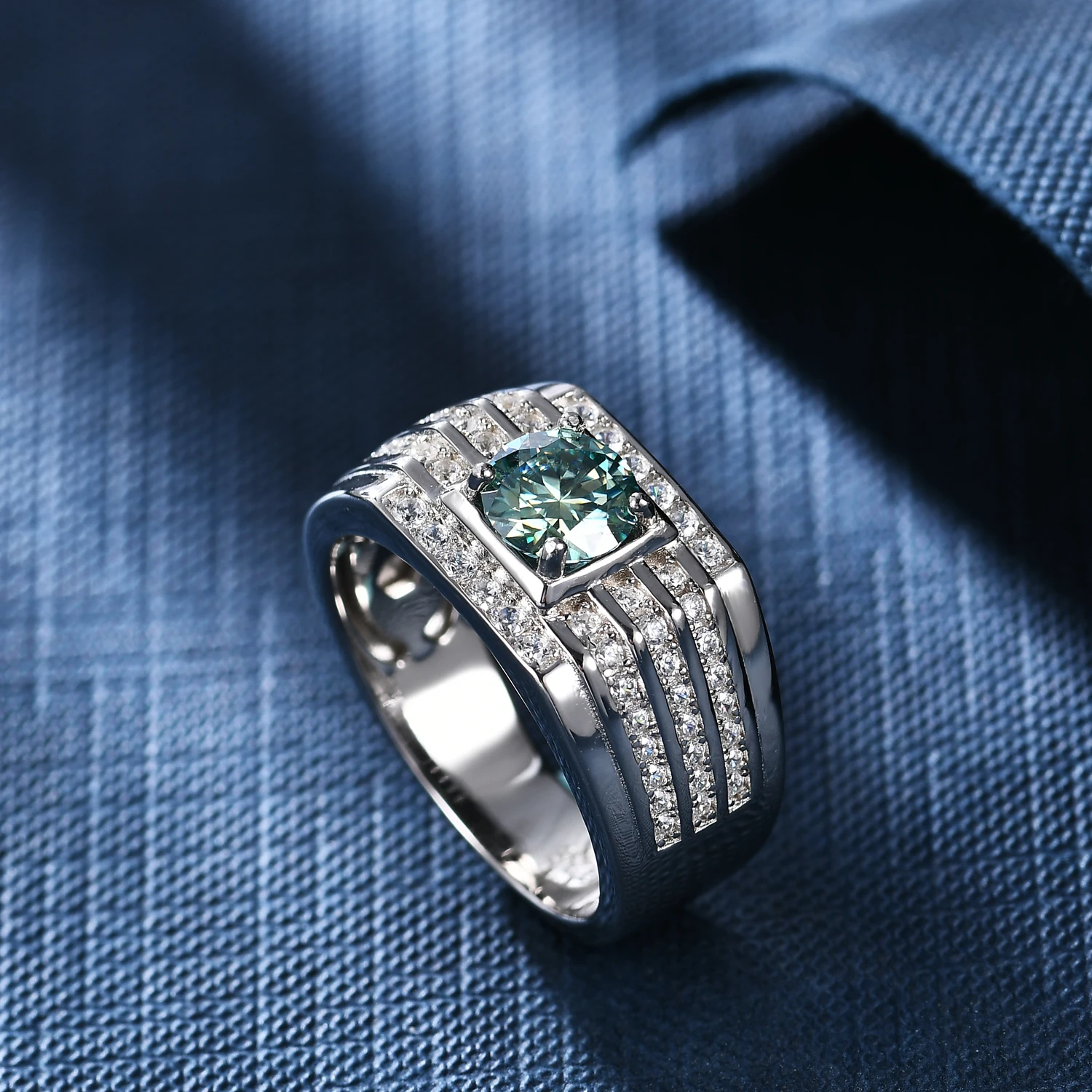 Мужское кольцо с мусанитом GEM'S BALLET, серебристое кольцо зеленог...