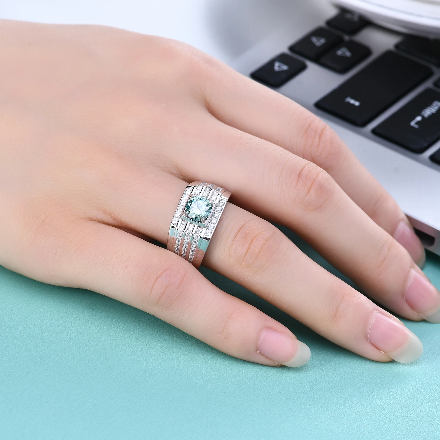 Gem балетки 925 пробы серебро Муассанит кольцо для Для мужчин сваде...