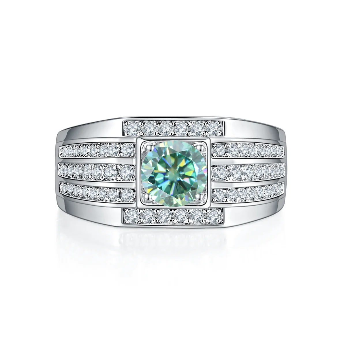 Кольцо мужское из серебра 925 пробы с муассанитом 2,0 карата, 8 мм