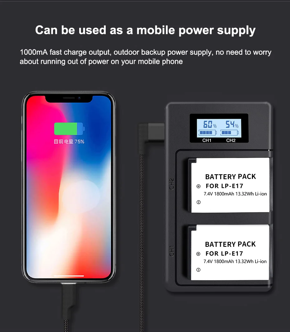 Аккумулятор PALO LP-E17 в процессе обновления. Он покажет уровень мощности на Canon Rebel T6i, T6s, T7i, EOS SL2 ,750D, 760D, 77D , 800D, 8000D, камера EOS 200D KISS X8i Digita SLR (не включает в себя камеру Canon M Series s ) . Не отображает Срок службы батареи в камерах Canon Eos M3, M5, M6. Аккумуляторы должны заряжаться от зарядного устройства Совместимые модели:Для EOS M3 M5Для EOS 750D 760DДля EOS T6i T6SДля EOS 8000DДля KISS X8iДля EOS 200D Особенности:1. Литий-ионные аккумуляторы премиум класса2. Высокая плотность энергии, долгий срок службы, без памяти3. Дополнительная мощность, больше снимков для ваших камер Примечание:На экране камеры нет уровня заряда батареи. LP-E17 не может быть заряжен оригинальным зарядным устройством Canon, только может быть заряжен PALOЗарядное устройство LP-E17, но оригинальный аккумулятор Canon LP-E17 можно заряжать с помощью зарядного устройства PALO.