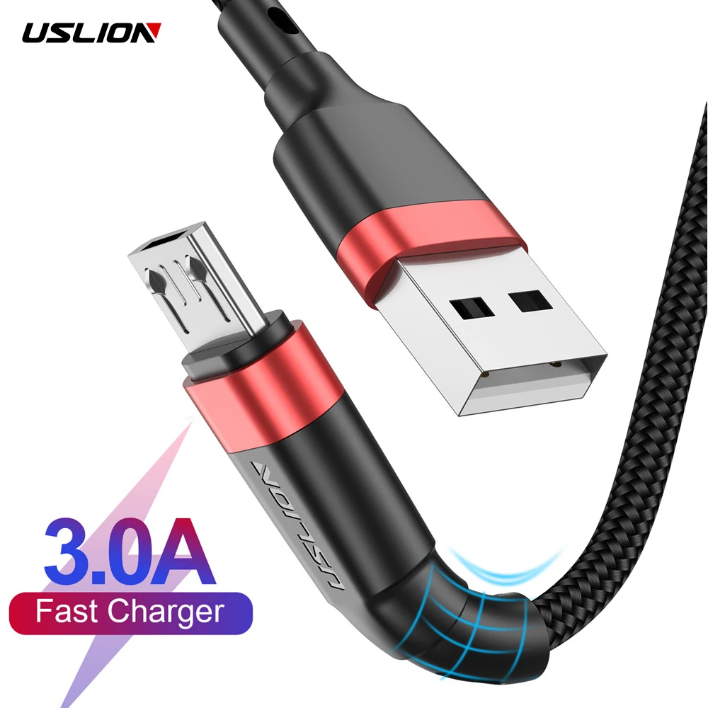 Кабель USB Type-C USLION для быстрой зарядки Xiaomi mi 11, 10, redmi note 10, Micro USB, шнур для передачи данных, зарядное устройство для Samsung S21, A51