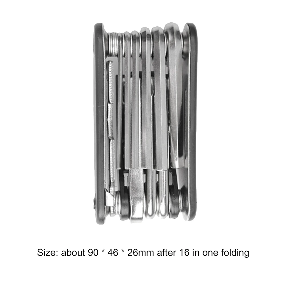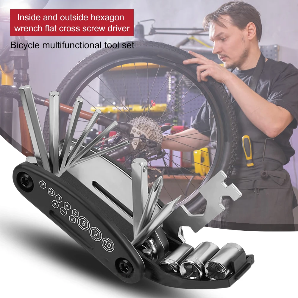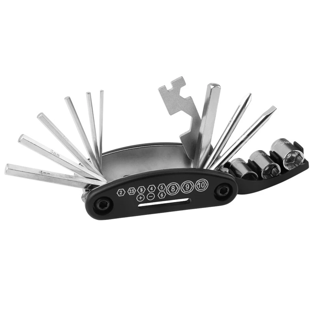 16 в 1 Набор ремонтных инструментов для велосипеда, стержни для шин, Портативные велосипедные многоинструментные гаечные отвертки, шестигранные спицы, MTB, принадлежности для ремонта горных велосипедовХарактеристика:1. Прочный и полностью функциональный.2. Это может помочь вам решить большинство проблем с велосипедом, когда вы едете.3. Супер легкий и компактный, можно положить в сумку или карман, легко носить с собой. Спецификация:Название: Набор инструментов для ремонта велосипедных шинЦвет: черныйМатериал: 16 в 1: Материал углеродистой стали, рычаг шины: Нейлон ПластикВес: около 220 гРазмер: прибл. 90*46*26 мм после складыванияСпецификация:6 шт внутренние шестигранники: 2,2.5,3,4,5,6 мм2 отвертки: 1 шлицевая отвертка, 1 отвертка Phillips3 шт. рукава: 8,9,10 мм3 шт открытые Ключи: 8,10,15 мм1 шт. спицевый инструмент Примечание:1. Из-за различных настроек монитора и светильник эффект, фактический цвет элемента может быть s светильник ly отличается от цвета, представленного на снимках. Спасибо!2. Возможны отклонения в 1-2 см вследствие измерений вручную.