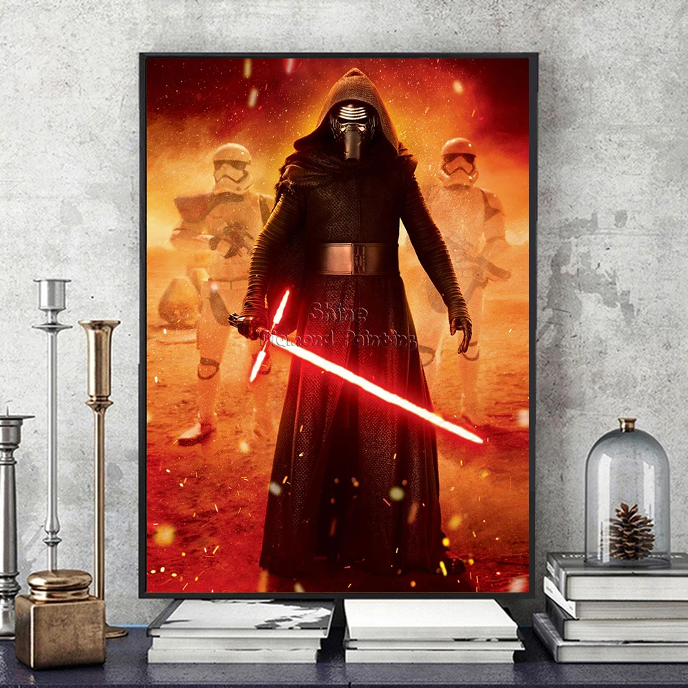 Алмазная живопись, Мультяшные Звездные войны, лазерный меч 5D, сделай сам, полноразмерная круглая вышивка, Набор для вышивки крестиком, украшение для дома, искусство