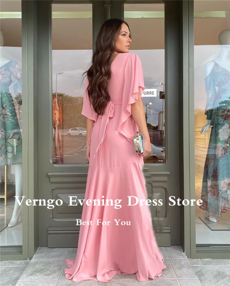 Розовое элегантное платье Verngo, атласное и шифоновое платье А-силуэта, с рукавами летучая мышь, V-образным вырезом, длиной до пола, длинные платья для выпускного бала