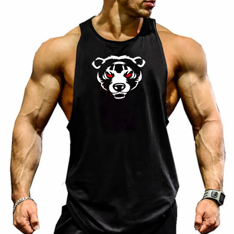 Майка мужская хлопковая, без рукавов, с принтом в виде медведя, для...