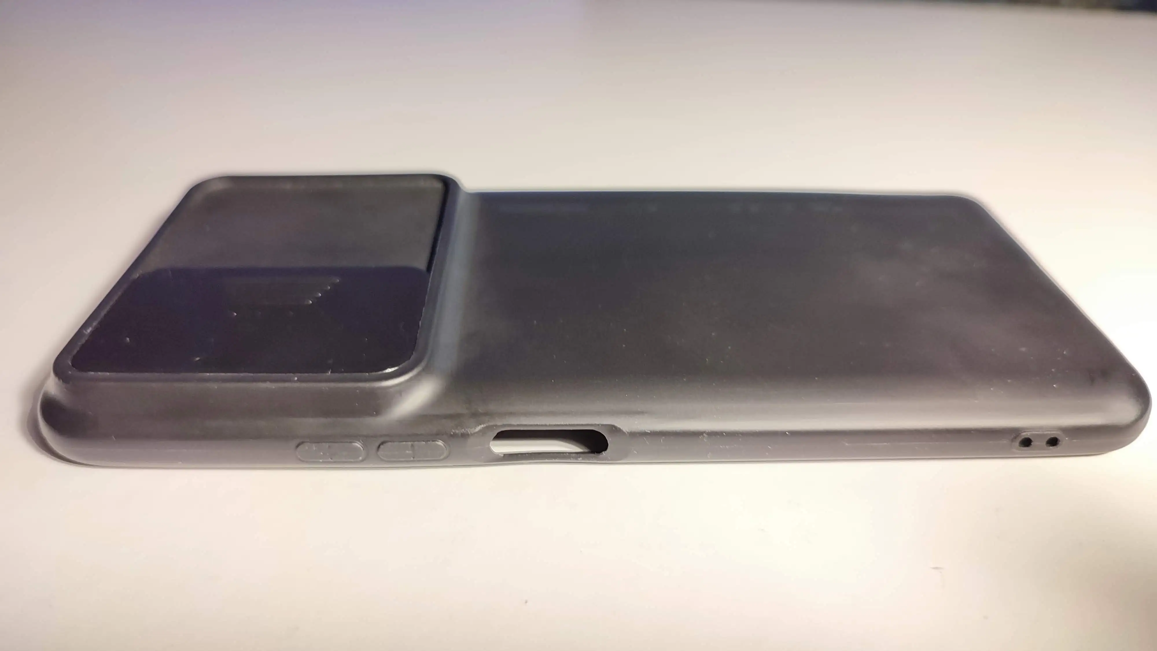 Идеальный чехол. Задняя защита объектива выпирает очень мало, углы сглажены. Материал очень приятный на ощупь силикон. Одевается на корпус смартфона идеально. Лучший чехол после сравнения пяти различных моделей.