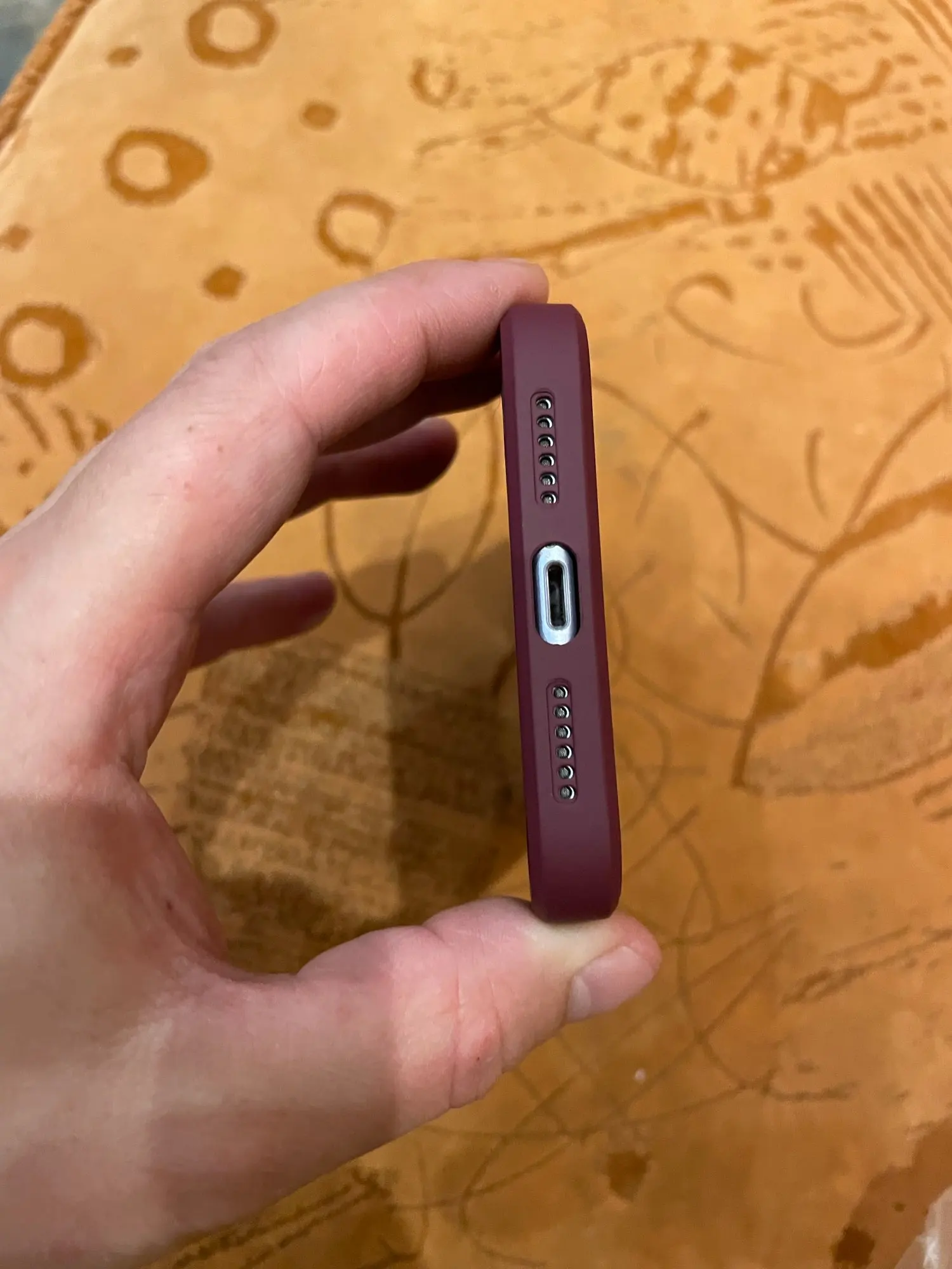 Пятна от рук остаются , куцеватый чехол для айфон про Макс 12. Цвет идентичный