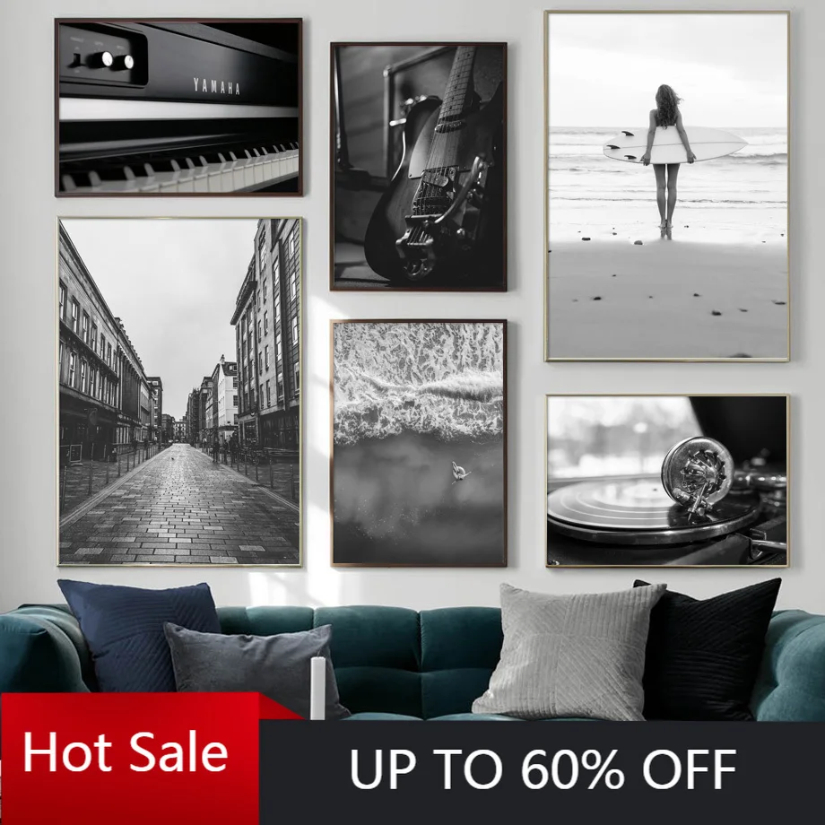 Самоклеящаяся картина, настенная наклейка, морской серфинг, улица, пианино, гитара, музыка, скандинавские винтажные принты, художественные картины для украшения дома icon star icon star icon star icon star icon star