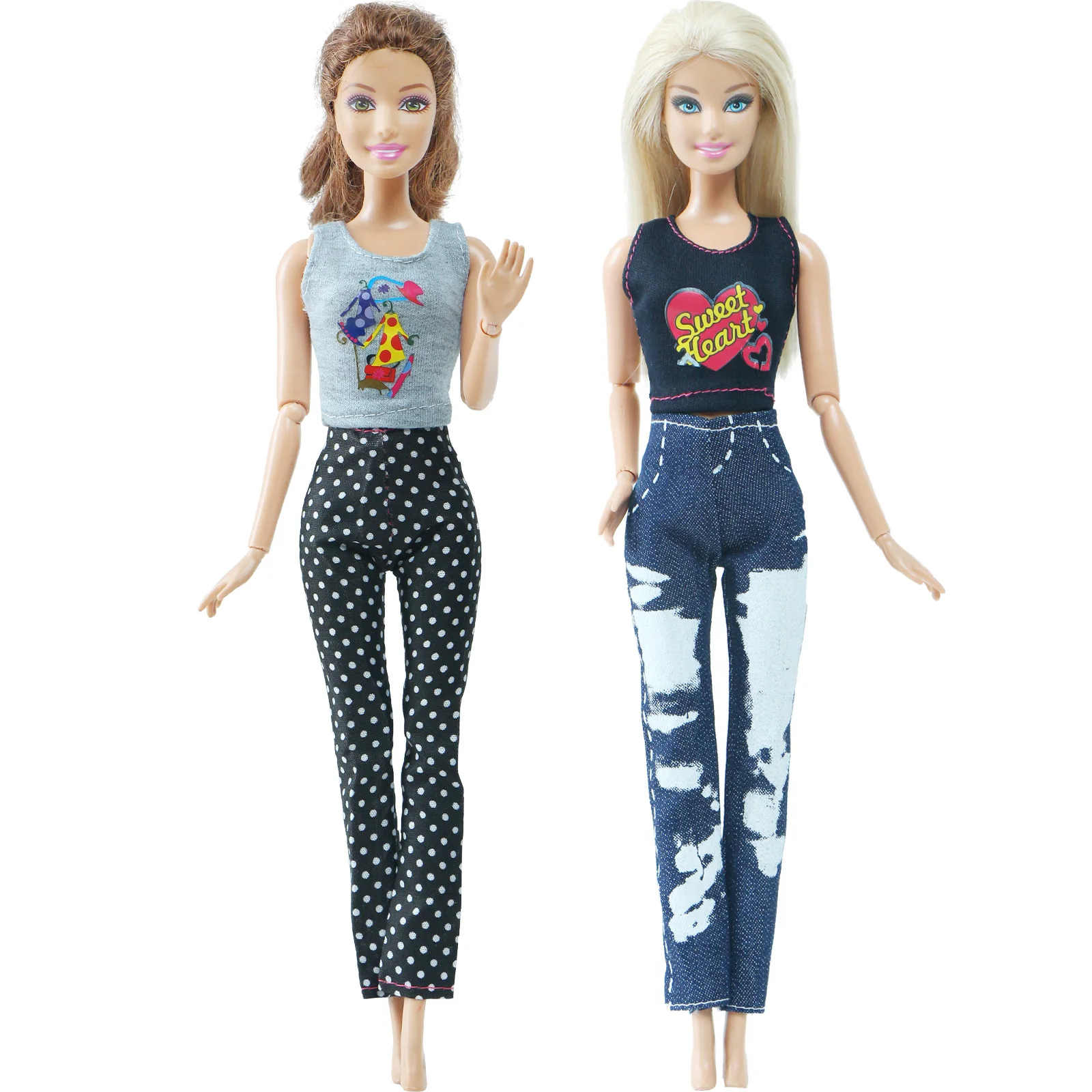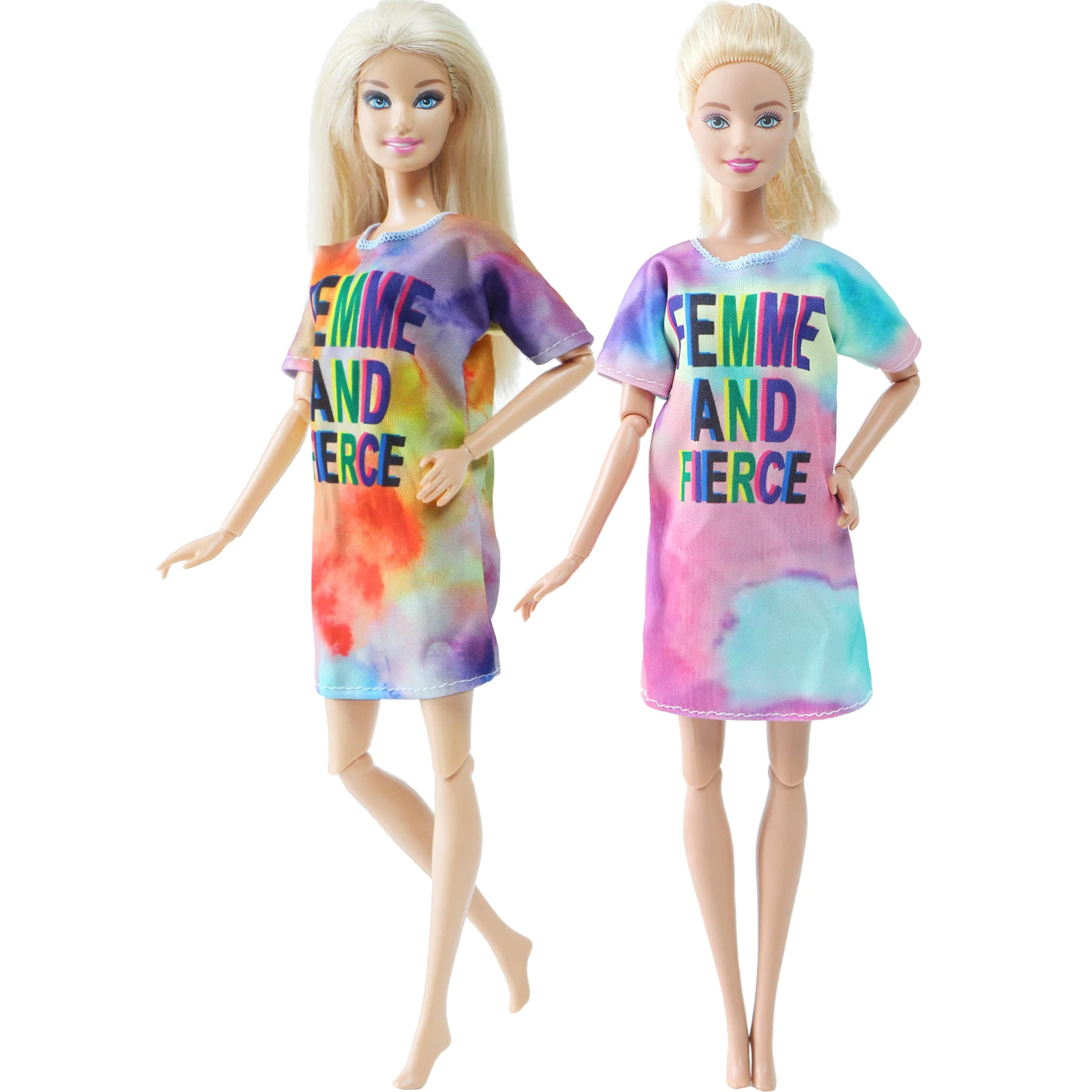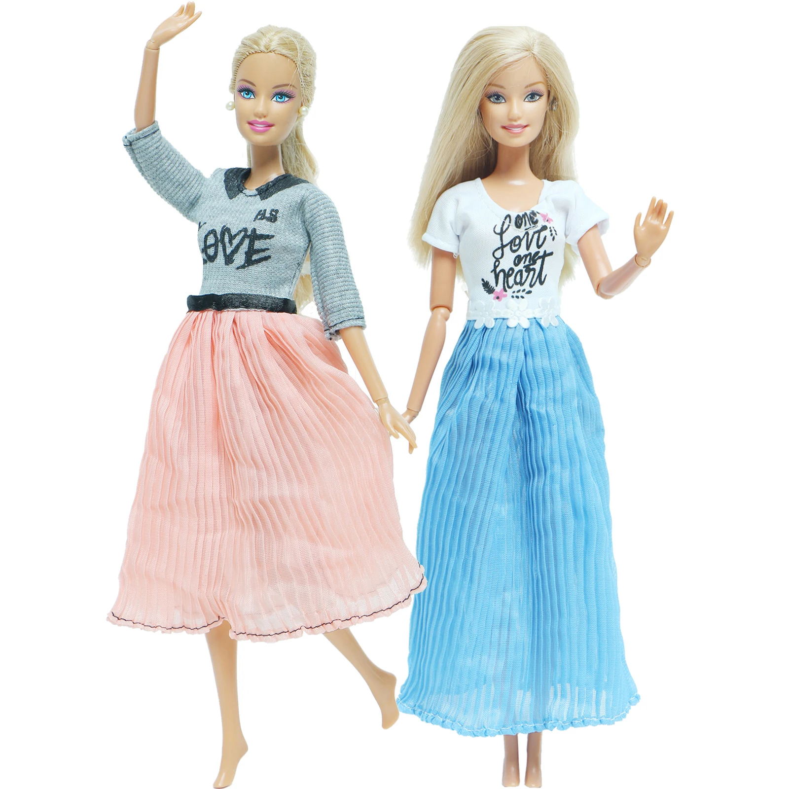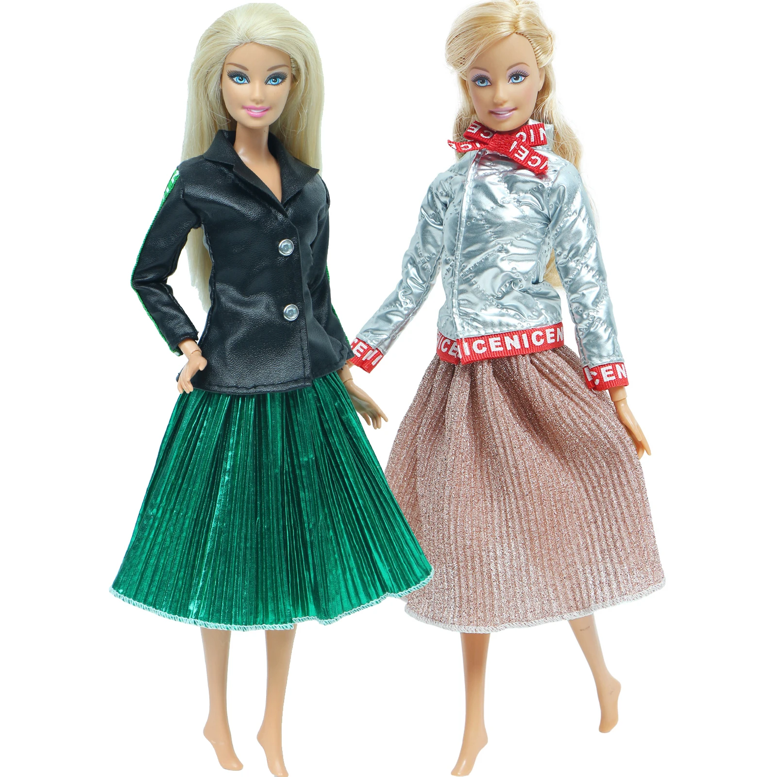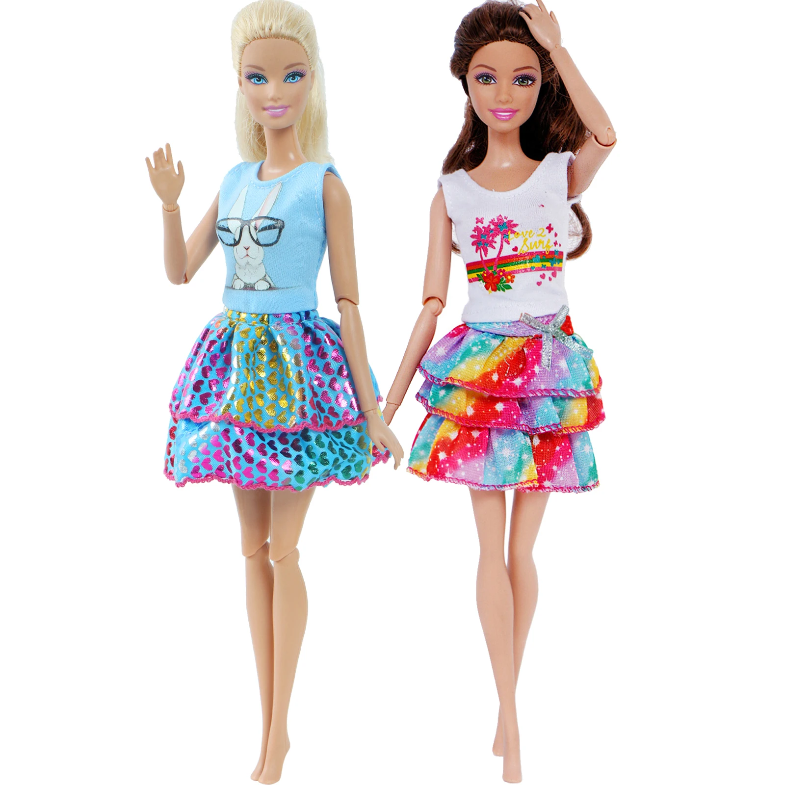 2 шт. платье, модная кукольная футболка, блестящая юбка, повседневная одежда, аксессуары для куклы Барби, комплект одежды, игрушка для кукольного домика