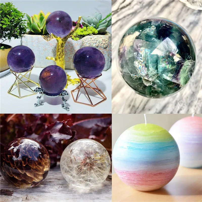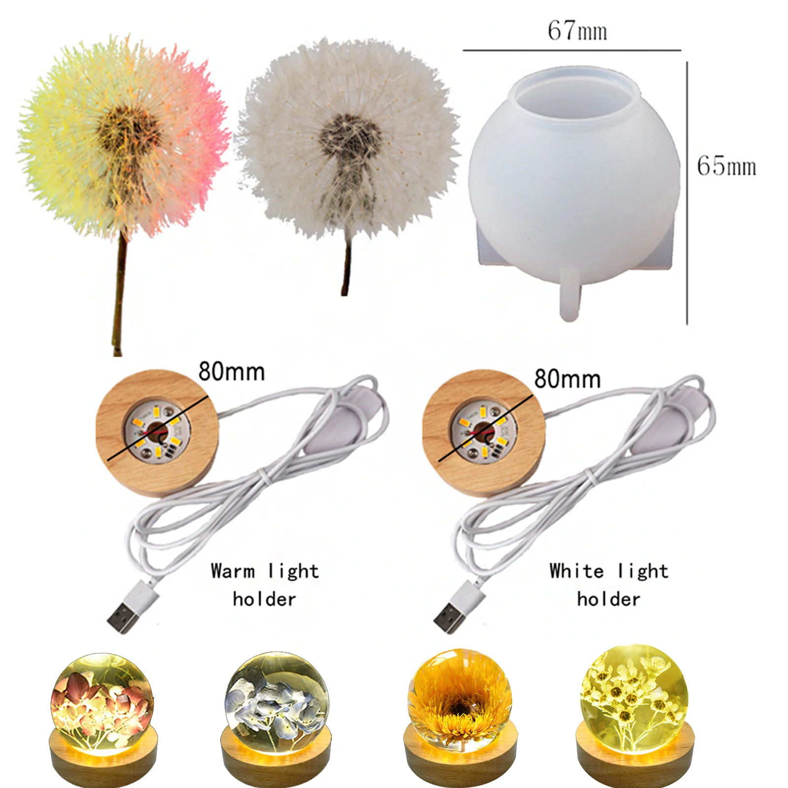 Большие сферы, формы для смолы, круглые силиконовые светодиодсветодиодный формы с деревянным дисплеем светильник осветительная основа, подставка для смолы, искусство, домашний декор