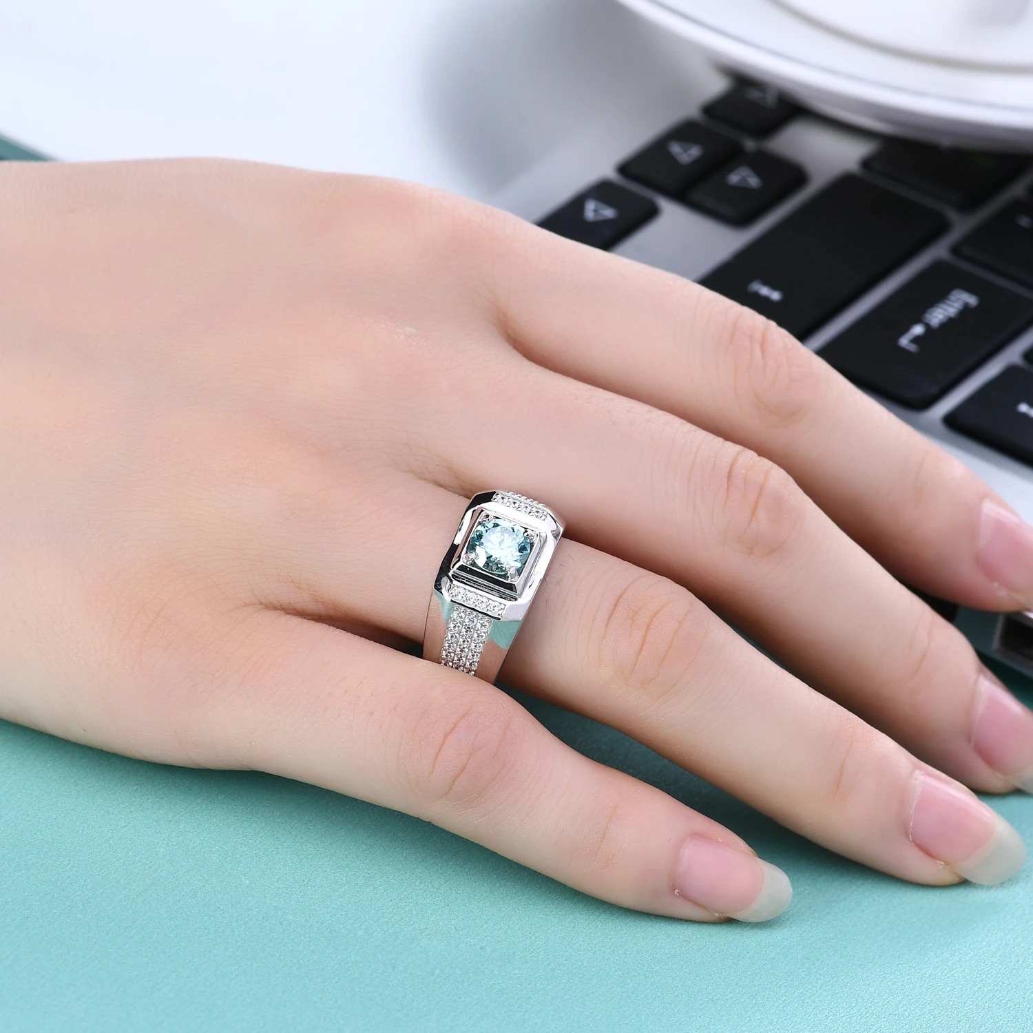 Кольцо мужское из серебра 925 пробы с муассанитом 2,0 карата, 8 мм