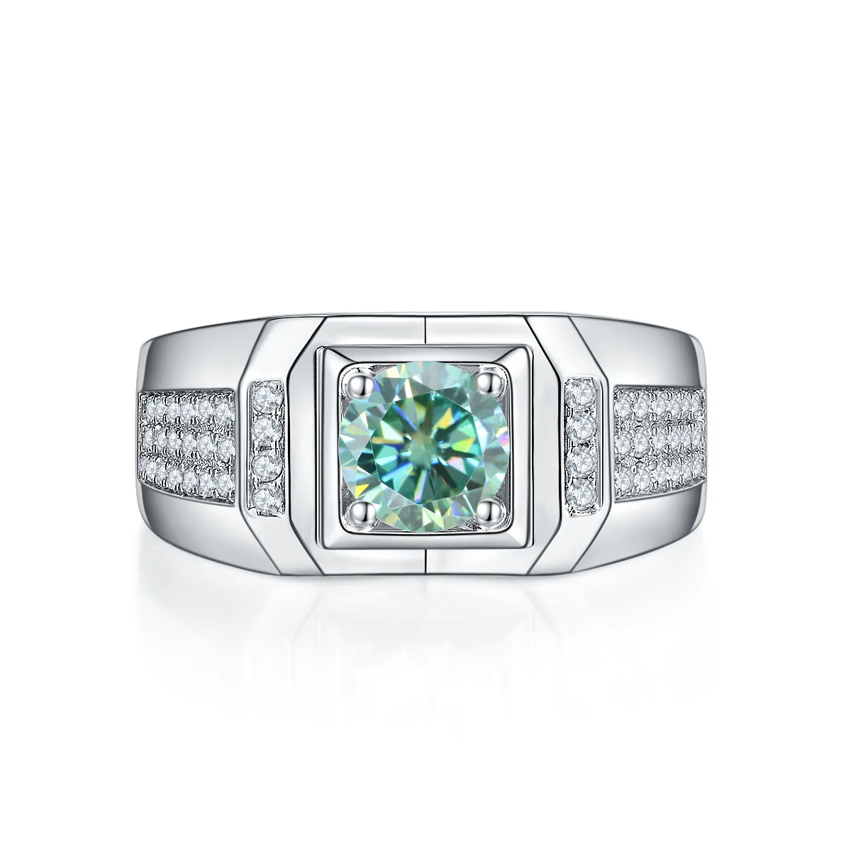 Мужское кольцо с муассанитом, серебро 925 пробы, цвет G 1,0 Ct., 6,5 мм