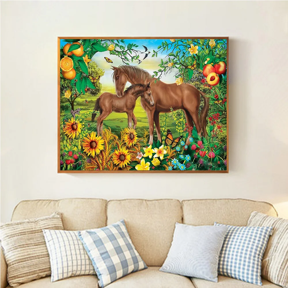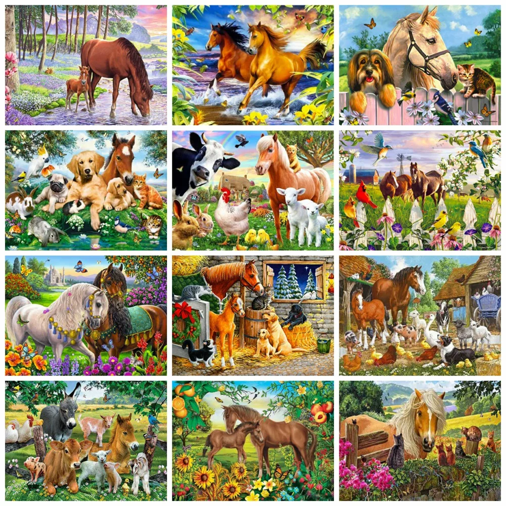 Алмазная живопись сделай сам, 5d мозаика с изображением лошади, животное, украшение для дома, вышивка крестиком, искусство с цветами на ферме