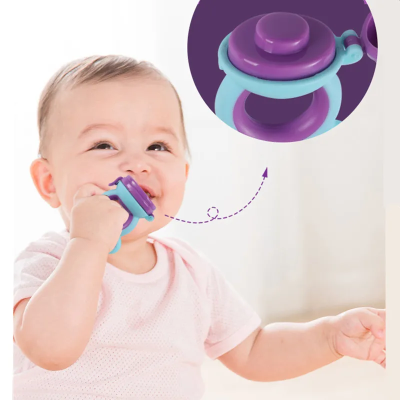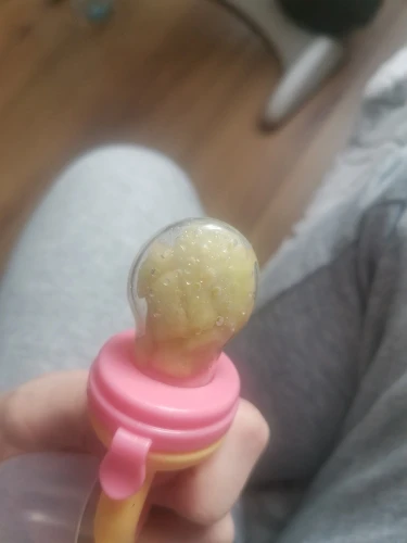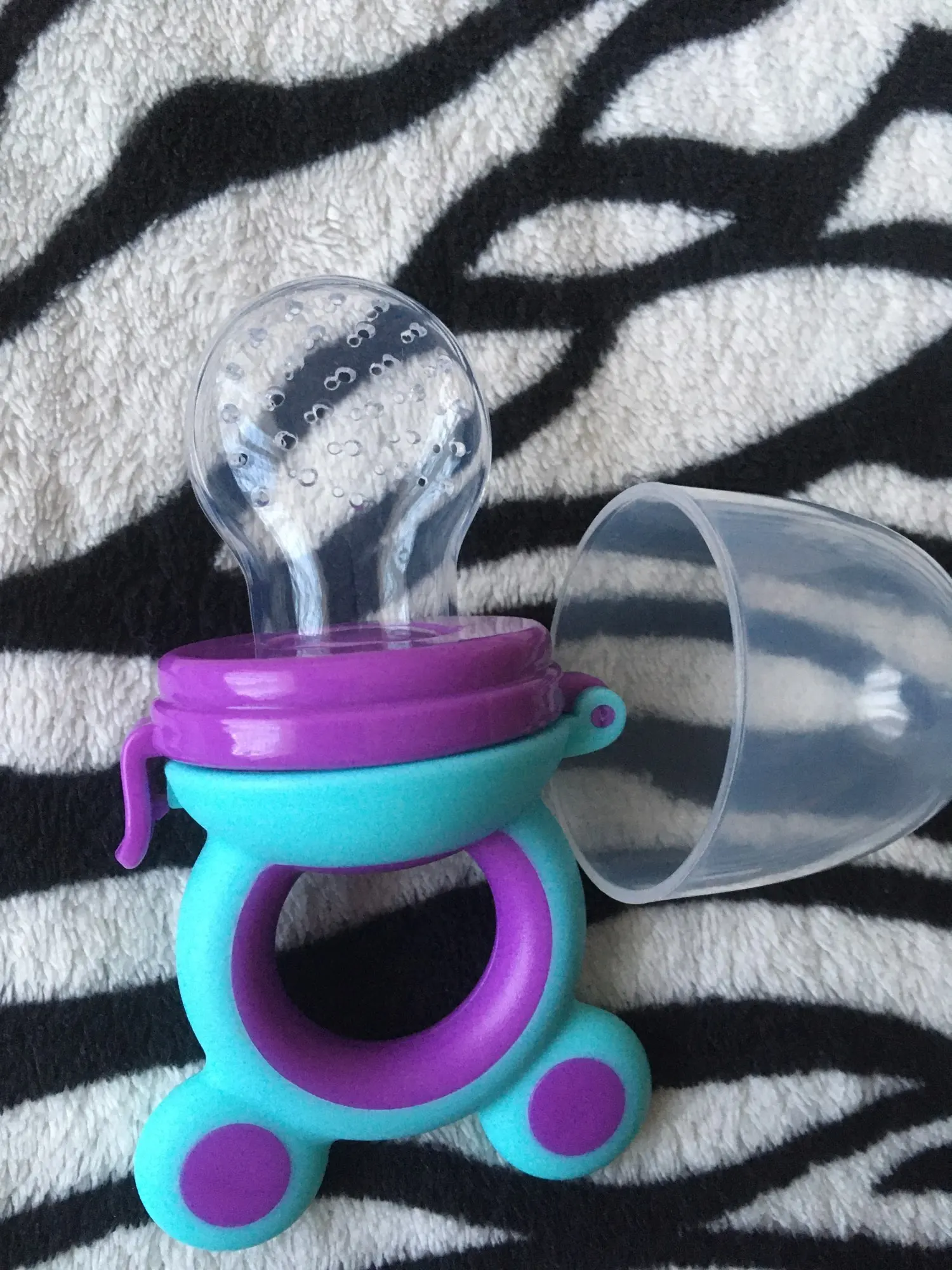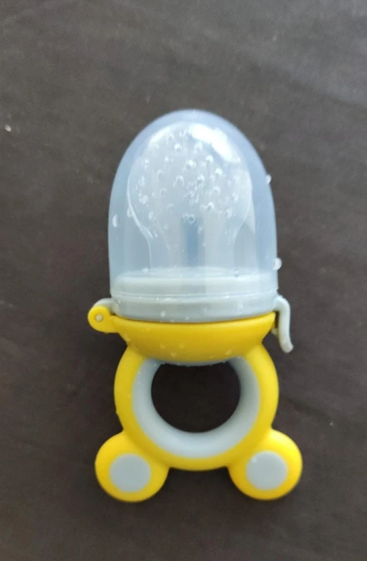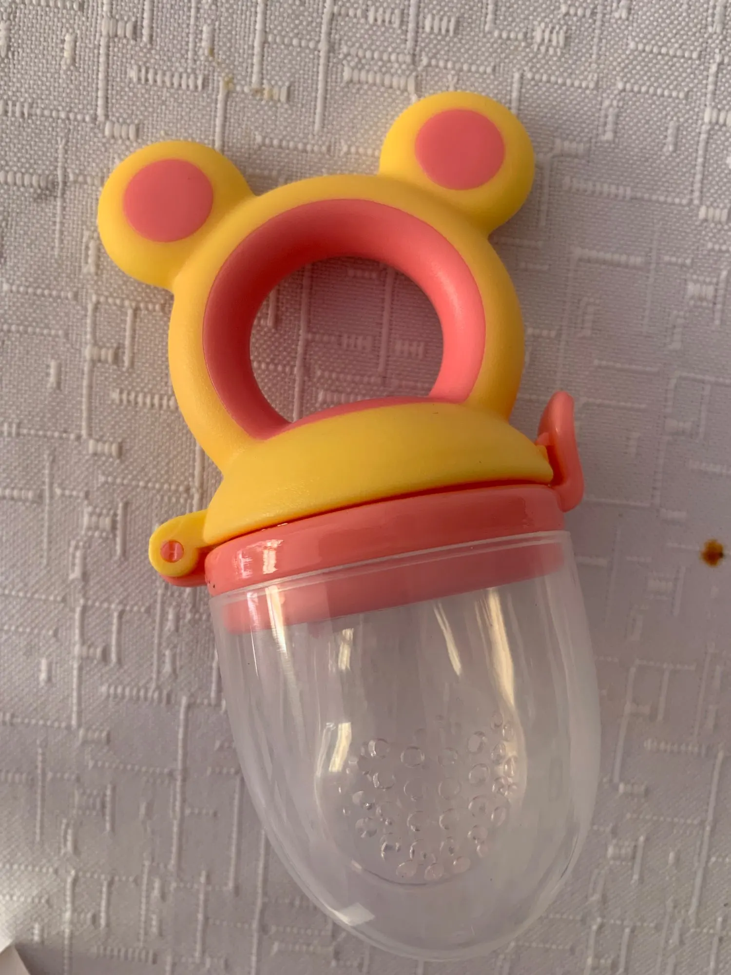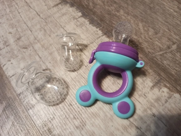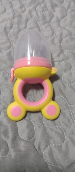 очень понравился. не пахнет ничем, очень мягкая часть для кусания пищи. ребёнку в семь месяцев удобно держать в руке.