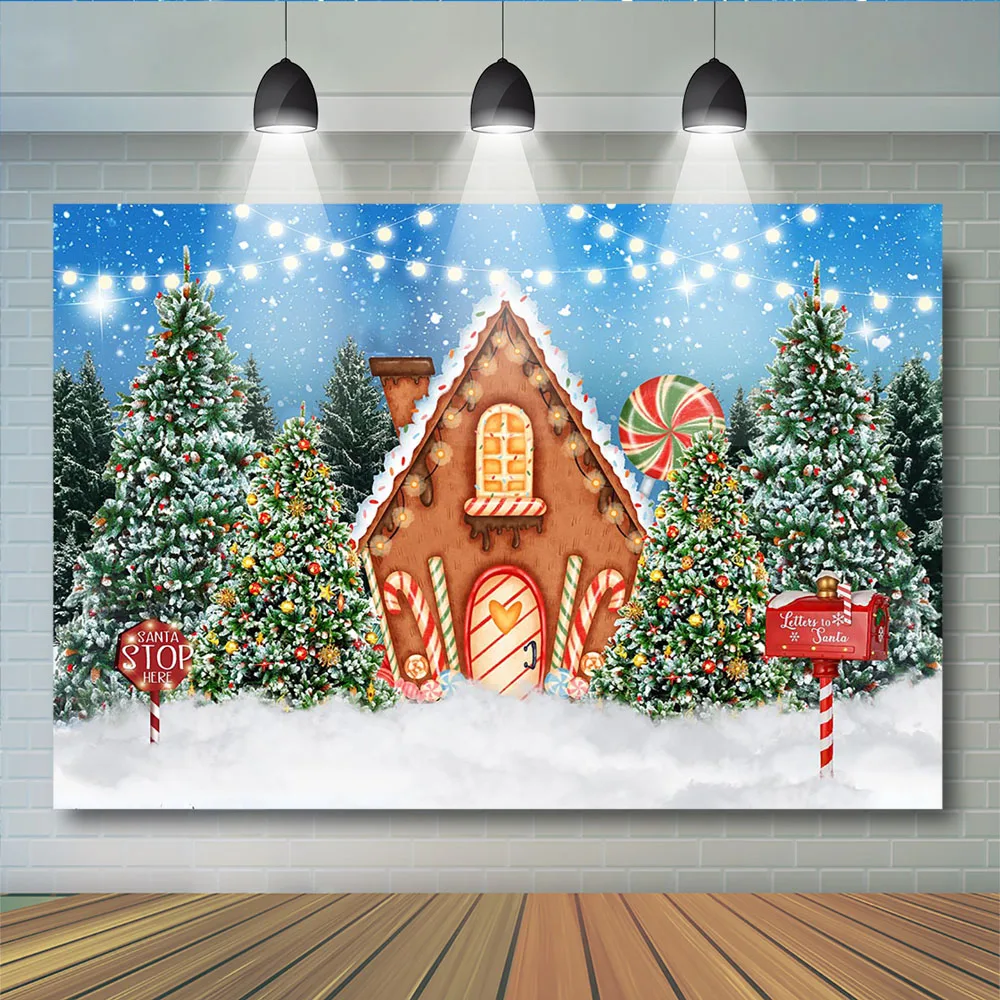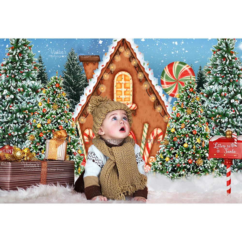 Фон для детской фотосъемки с изображением домика конфет Рождества леса торта разбитого баннера для студийной фотосъемки детей