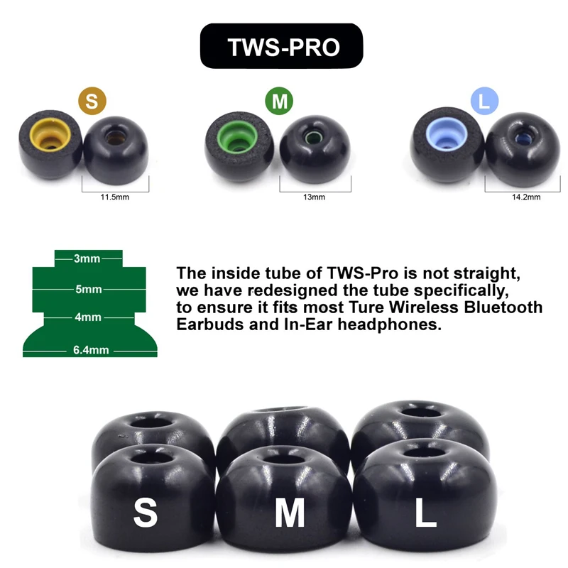 BGWORLD TWS-Pro Ear Buds с пеной памяти, наконечники для туры беспр...