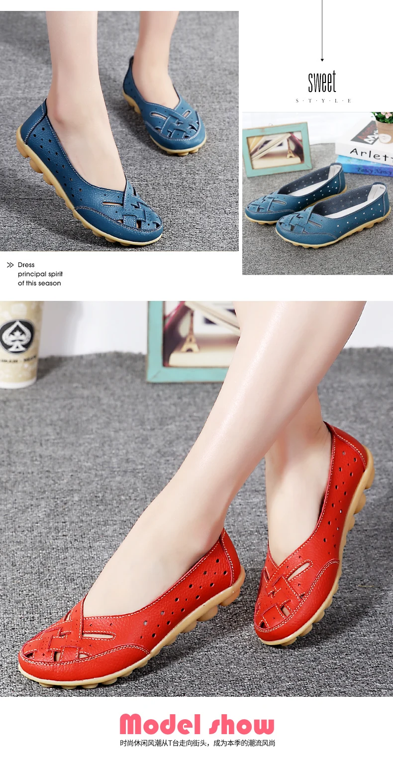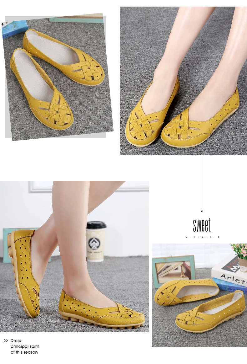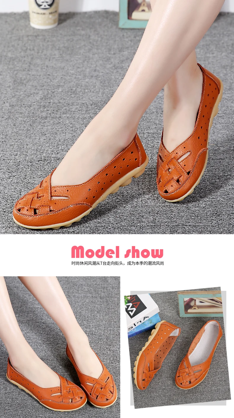 Туфли женские летние из натуральной кожи, перфорированные, без застежки, лоферы, повседневная обувь на плоской подошве, топ-сайдеры, большие размеры 35-44