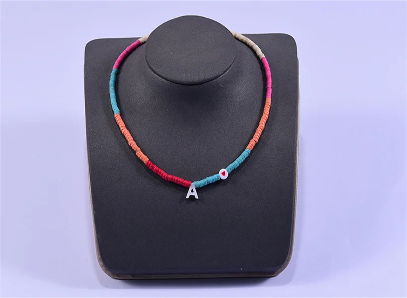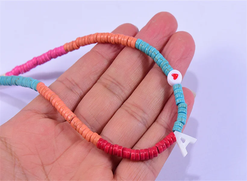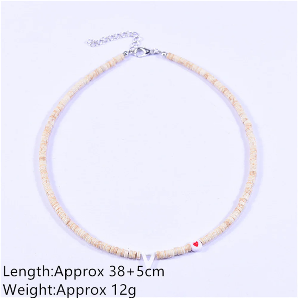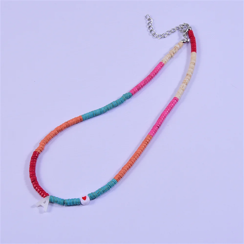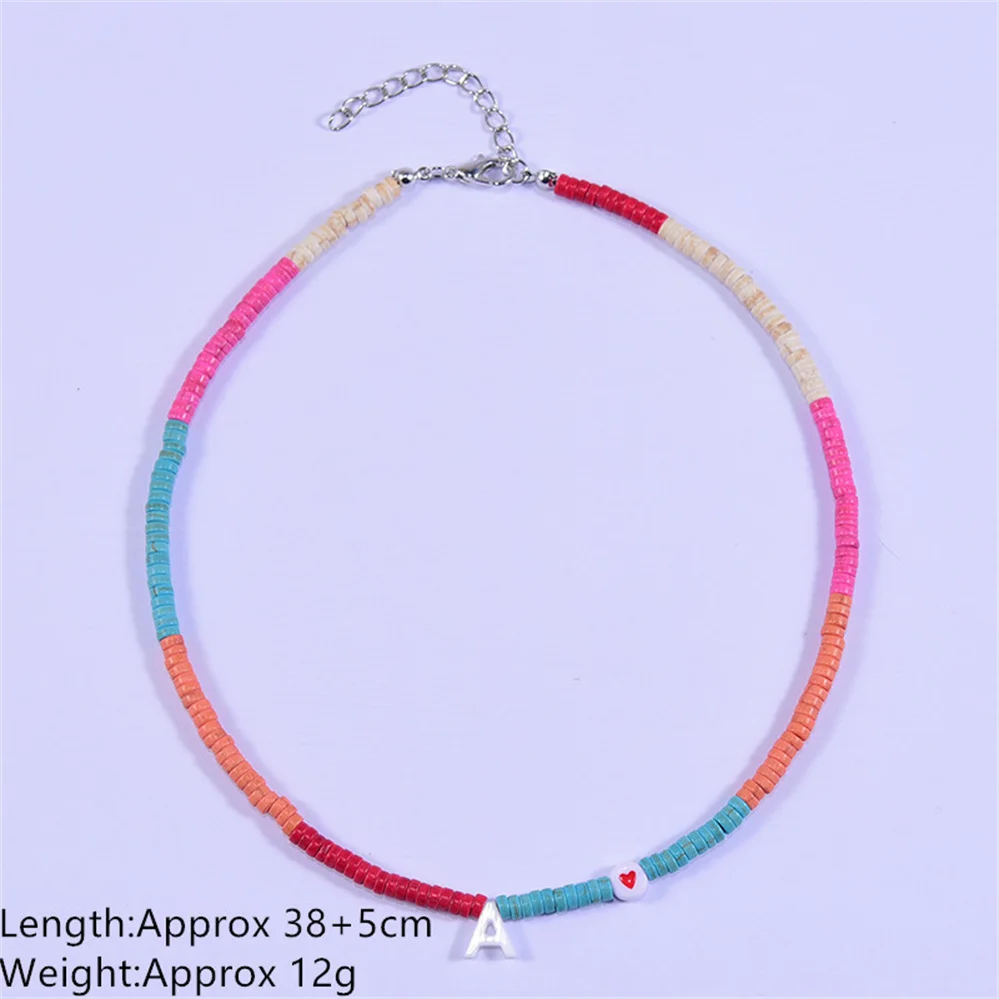 Модное ожерелье с буквами инициала, сердечками и ракушками для женщин, разноцветная цепочка на шею, подвеска из искусственного камня и бисера, ювелирное изделие, чокер