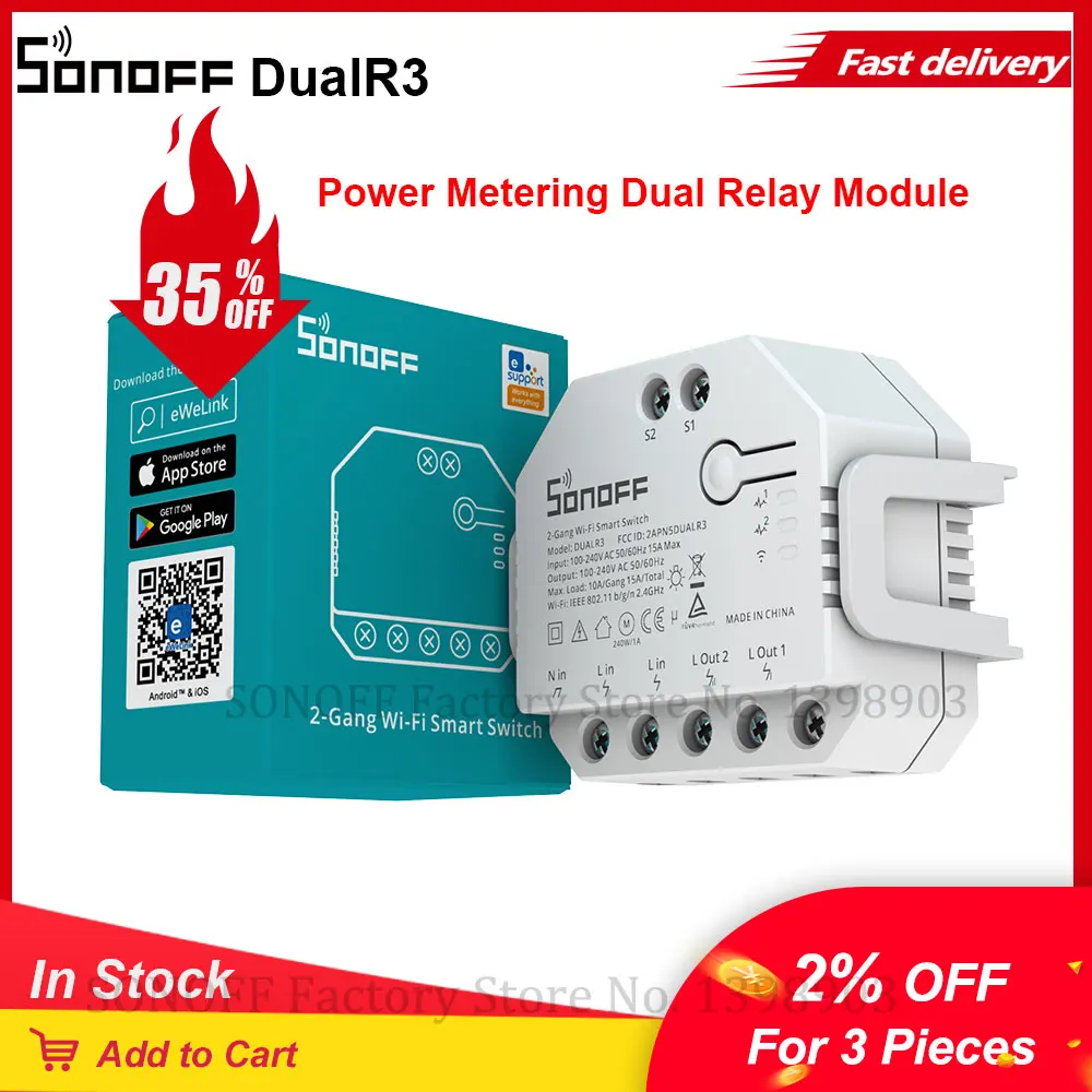SONOFF DUALR3 выводит ваш дом на следующий уровень. DUALR3-это встроенный модуль беспроводного двойного реле Wi-Fi, который устанавливается за любым стандартным переключателем для передачи его в умный переключатель для беспроводного дистанционного управления с помощью мобильных устройств или голосовой команды. Объединяя ваши бытовые приборы в интегрированную беспроводную сеть, чтобы они общались друг с другом, что удобно для вас управлять и контролировать, включая свет, бытовую технику и моторизованные объекты, такие как рольставни, оконные оттенки, жалюзи, тенты и т. Д.Доступны три режима работы. DUALR3 поставляется с режимом переключения, режимом двигателя и режимом счетчика. Одной из типичных особенностей является умное управление рулонными затворами и окнами в режиме двигателя. Модуль переключателя обеспечивает максимальную гибкость для ваших роликовых затворов и оконных теней с помощью пульта дистанционного управления и планирования событий независимо от того, являетесь ли вы дома или нет.Двойной двусторонний контроль. Модуль двойного реле распределяет нагрузку на два входа по сравнению с простым реле, которое этот Рабочий механизм позволяет управлять двумя устройствами независимо друг от друга.
