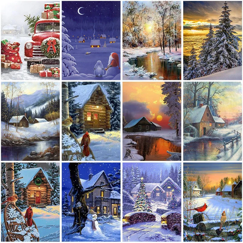Алмазная вышивка сделай сам 5D с квадратными стразами, зимний пейзаж, снег, вышивка крестиком, мозаика, подарок, домашний декор