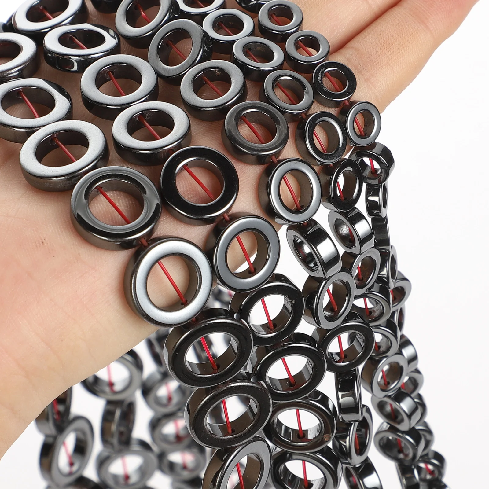 Бусины из натурального камня, полые круглые бусины из черного гемат...