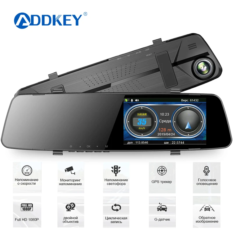 Автомобильный видеорегистратор ADDKEY, зеркальная камера, радар-детектор, Автомобильный видеорегистратор Full HD 1080P, камера заднего вида с двумя объективами