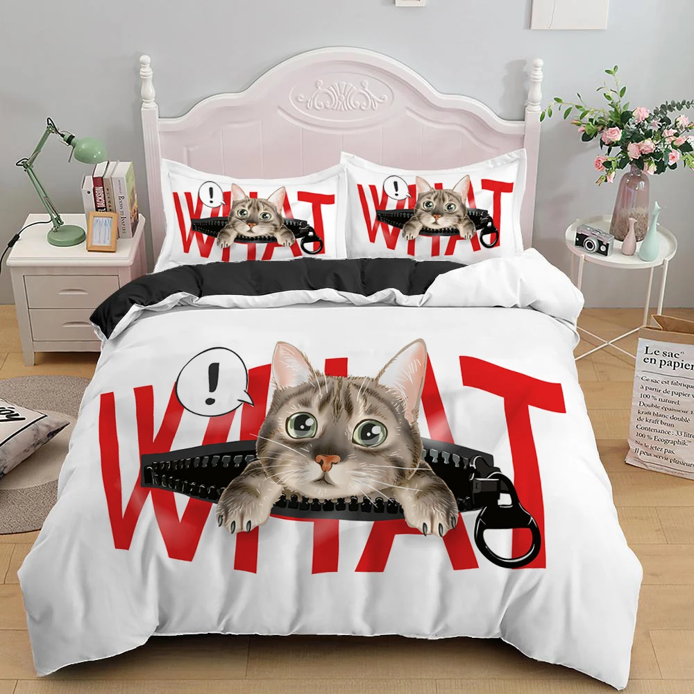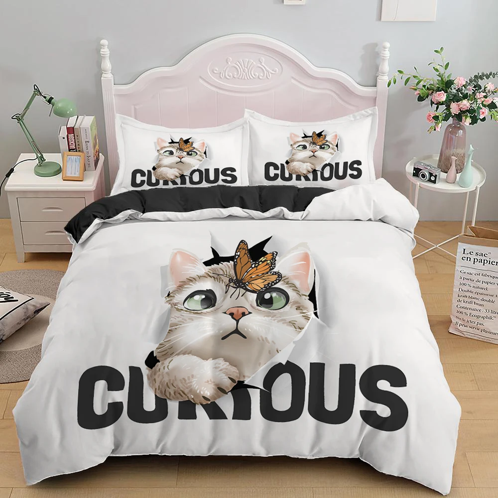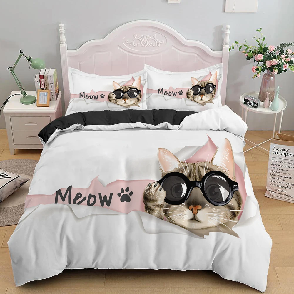 Комплект постельного белья с изображением милого кота, пододеяльник с рисунком котенка, односпальная и двуспальная кровать, пододеяльник, скандинавский постельный комплект для двуспальной кровати