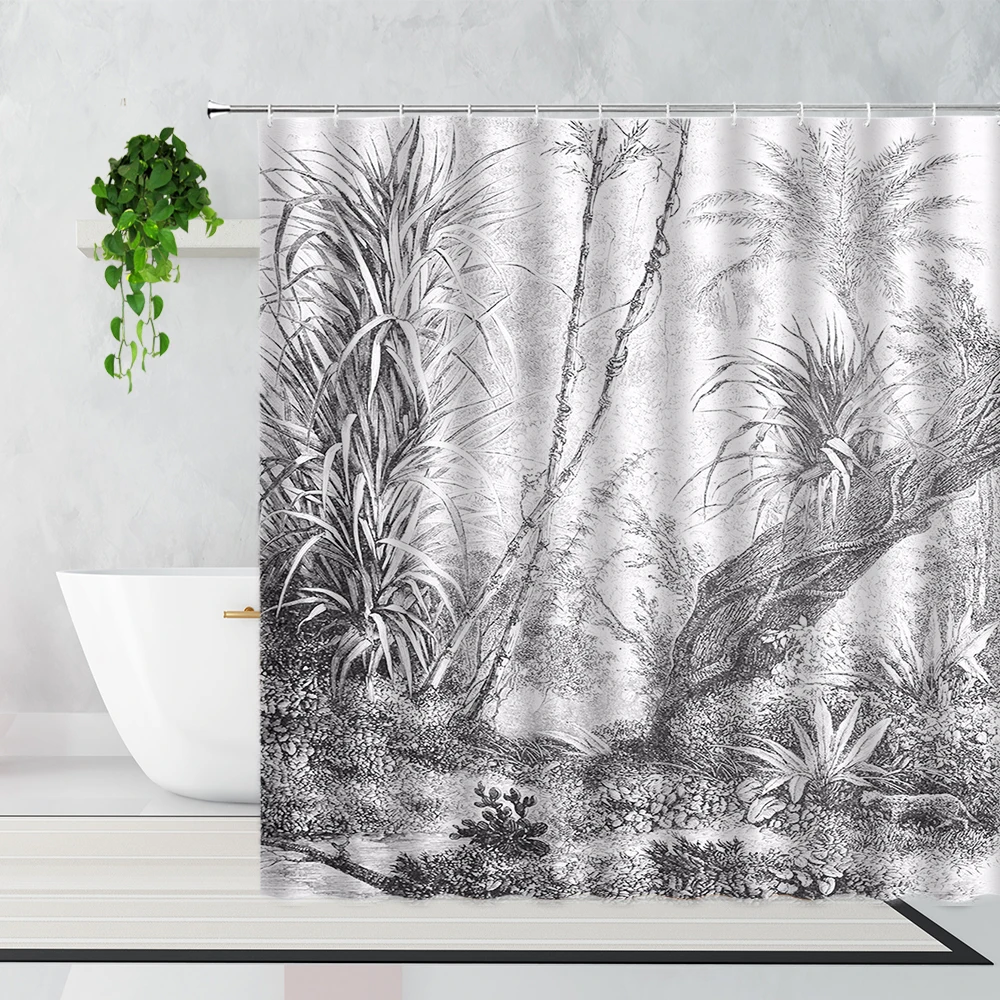 Занавеска для душа в стиле ретро, для окна, растения, цветов, винта...