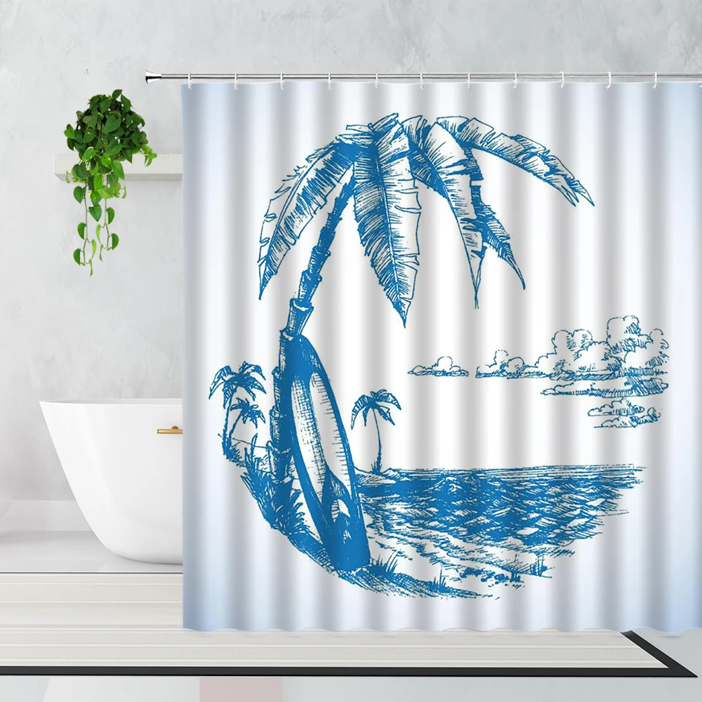 Занавеска для душа с морским пейзажем, водонепроницаемый тканевый ш...