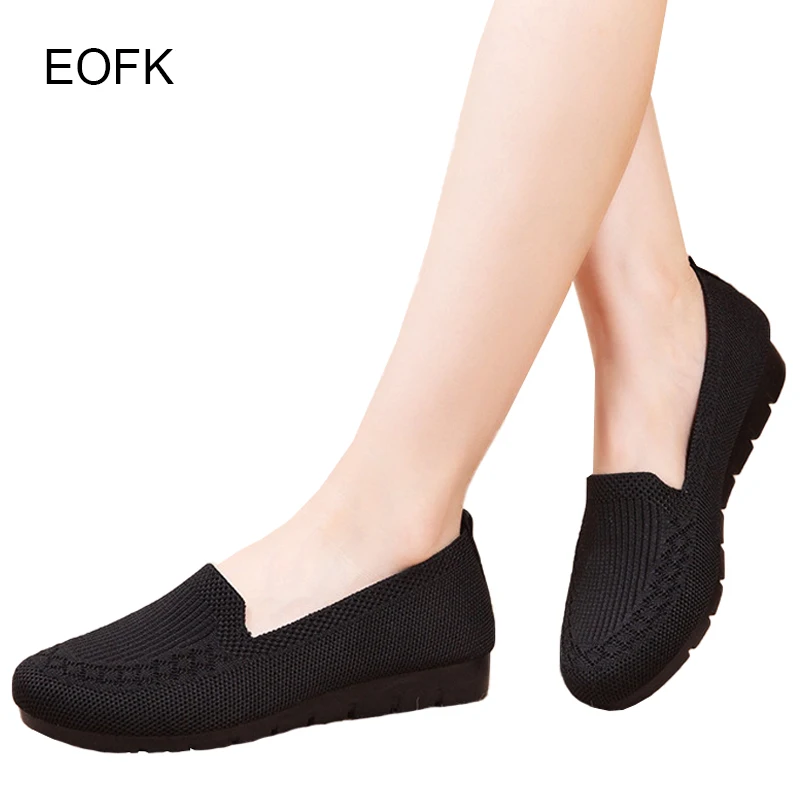 Женские сетчатые туфли EOFK, удобные лоферы на плоской подошве, дышащая повседневная обувь без застежки