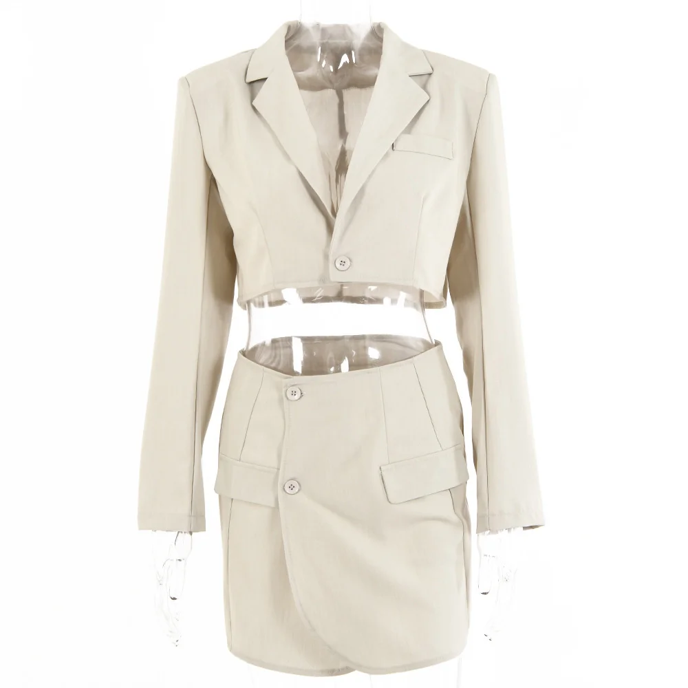 Sibybo, укороченный пиджак, комплект из двух предметов, Женская юбка, 2021, осенняя куртка на пуговицах, Блейзер, высокая талия, мини юбки, Femme, повседневная юбка + костюмы
