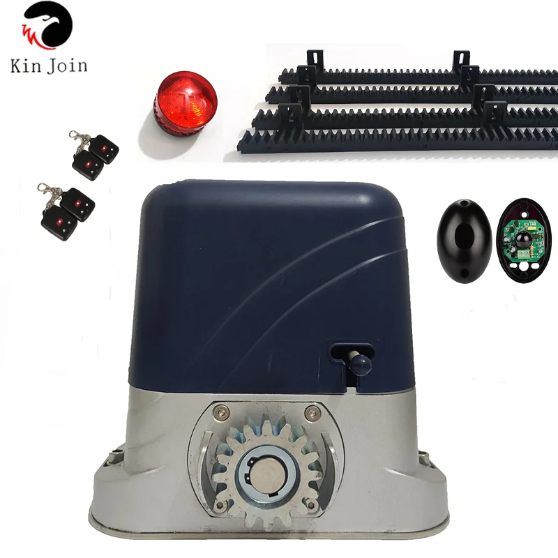 Электрический автоматический Открыватель раздвижных ворот KinJoin DC24V, моторный оператор для нагрузки 500 кг 1100LBS ворот с 4 м нейлоновыми стойками, 4 брелока
