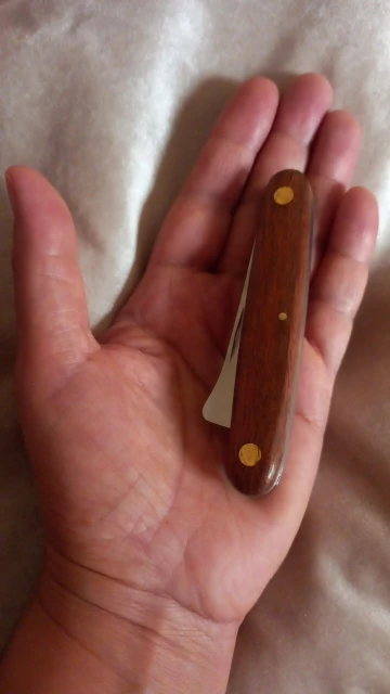 Отличный нож для прививки, изготовлен из хорошего материала, выглядит очень прочным, на протяжении многих лет. Я заказал два ножа в подарок.