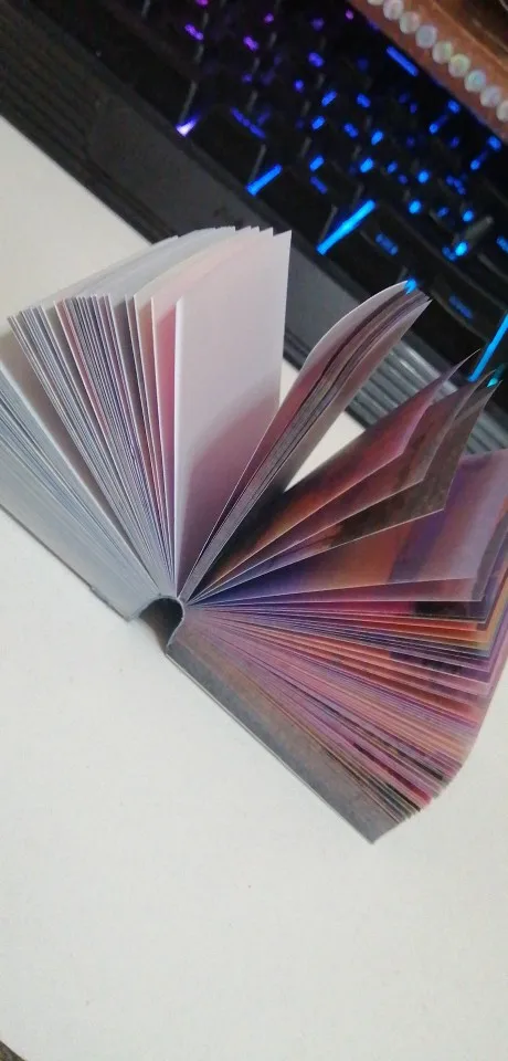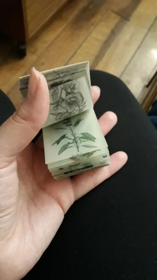 они такие малюсенькие.. Покупала в качестве блокнотов, чтобы записывать интересности. Умиляюсь каждый раз, когда берутв руки. Все листочки разные. Темные листочки похожи на тонкий глянцевый пластик. Но писать удобно. Короче, получаю большое удовольствие.